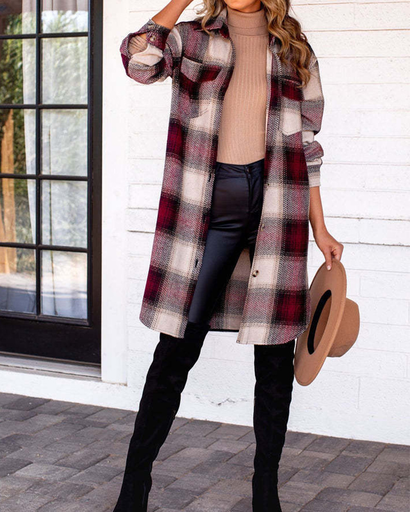 Women's Fashion Single Breasted Plaid Lapel Jacket Coat