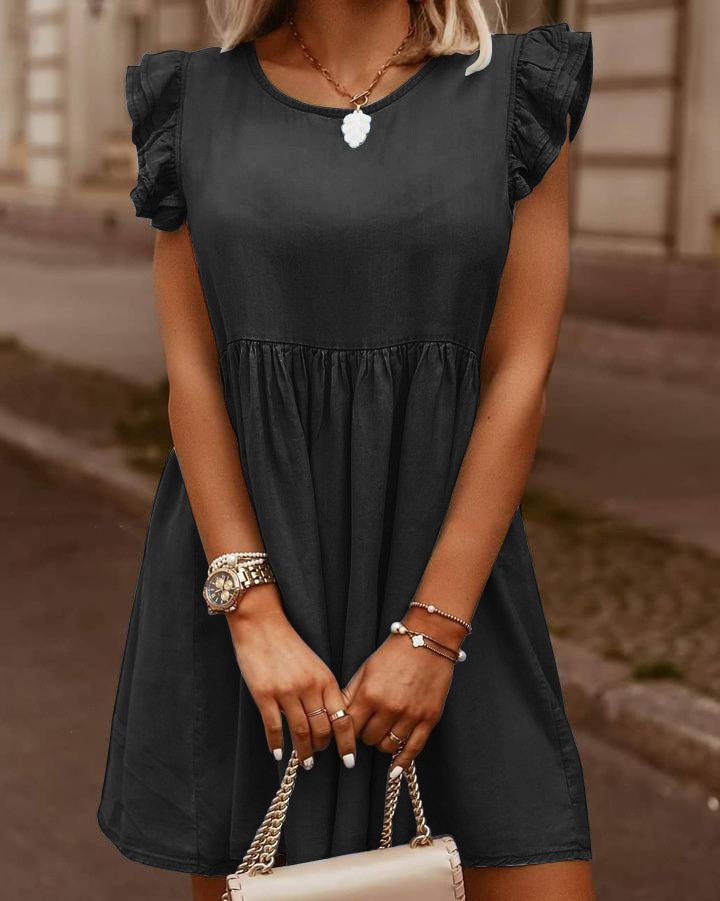 Solid Color Sleeveless V Neck Loose Casual Denim Dress