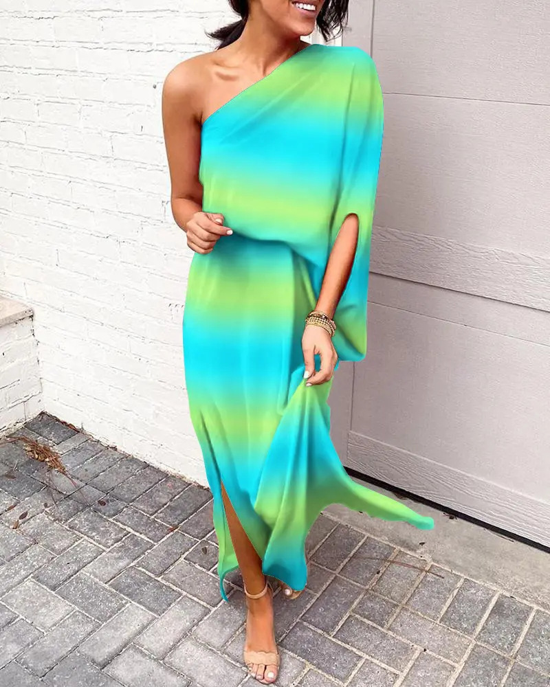 Sexy Slanted Shoulder Leaf Print One Sleeve Dress