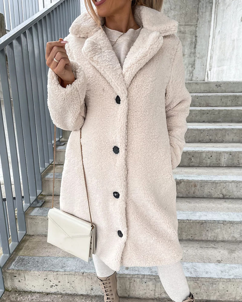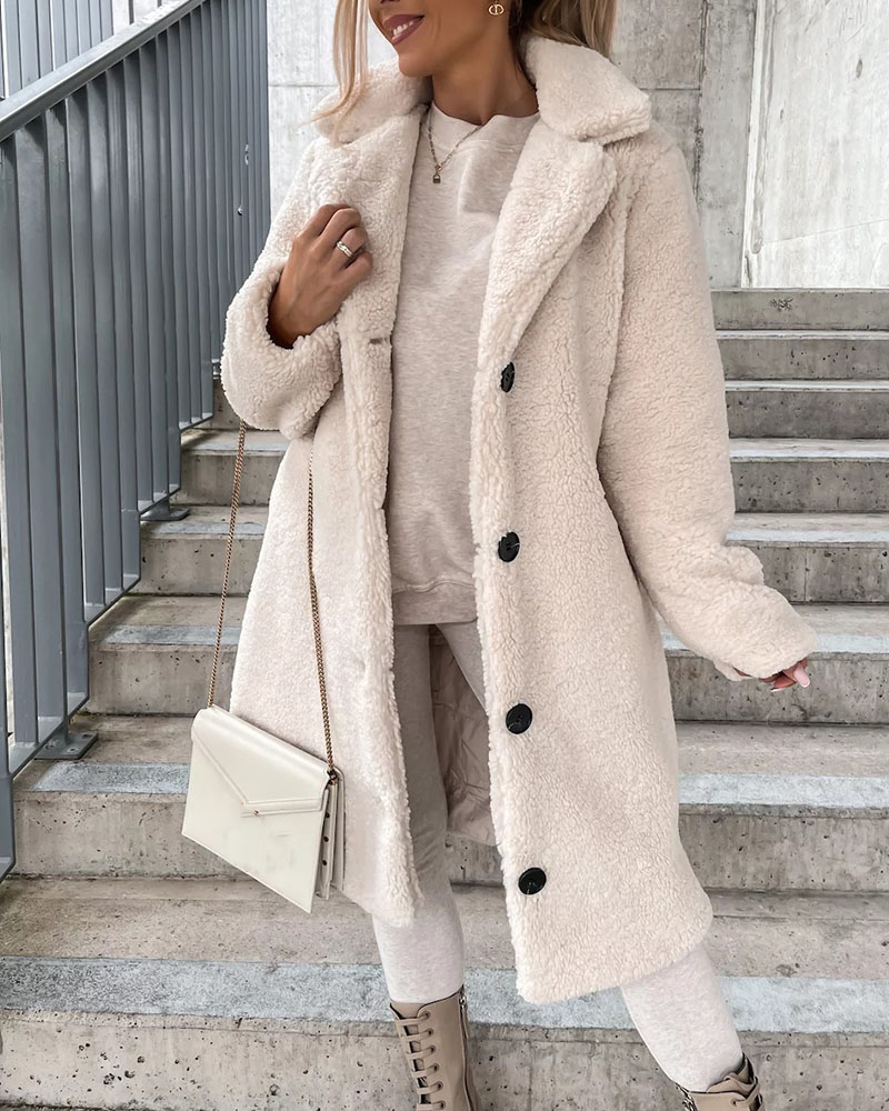Women's Long Sleeve Lapel Plush Top Long Coat