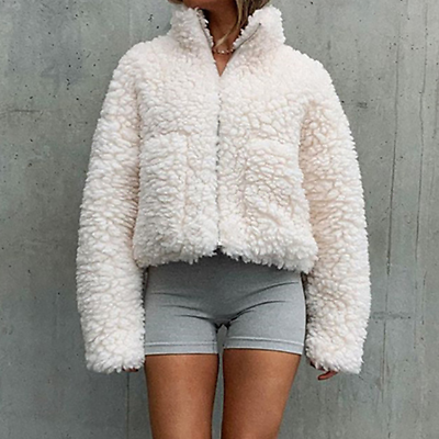 Women's Plush Cardigan Cropped Jacket Faux Fur Jacket