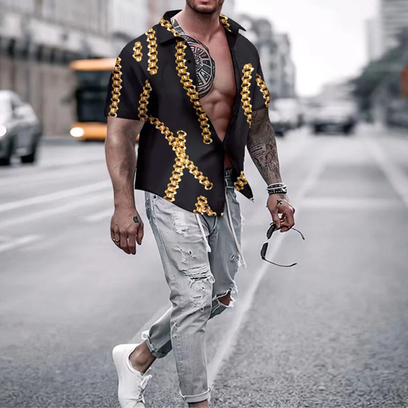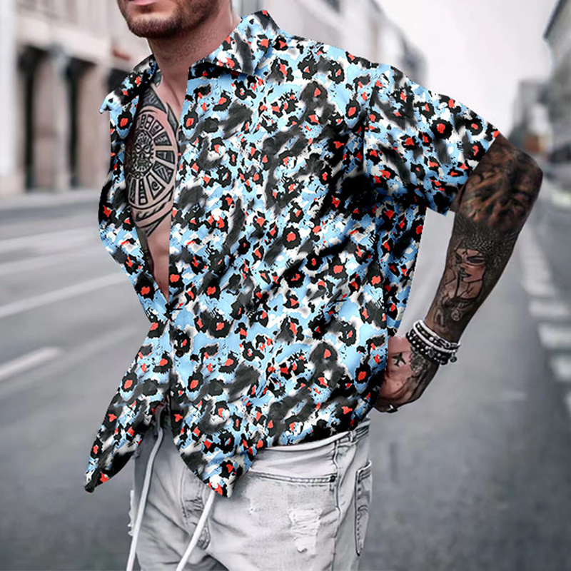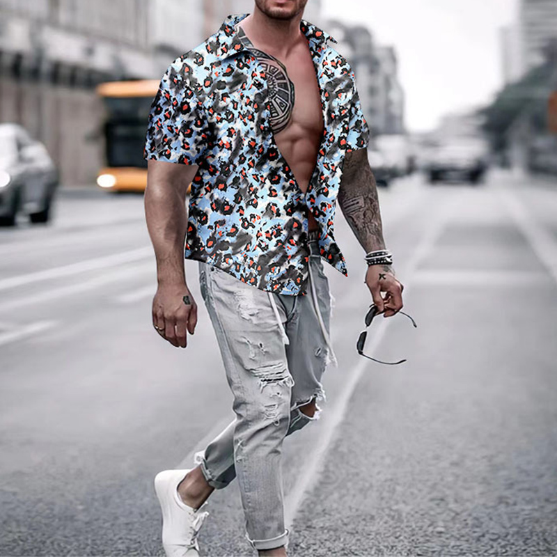 Men's Casual Lapel Print Thin Hawaiian Short Sleeve Shirt
