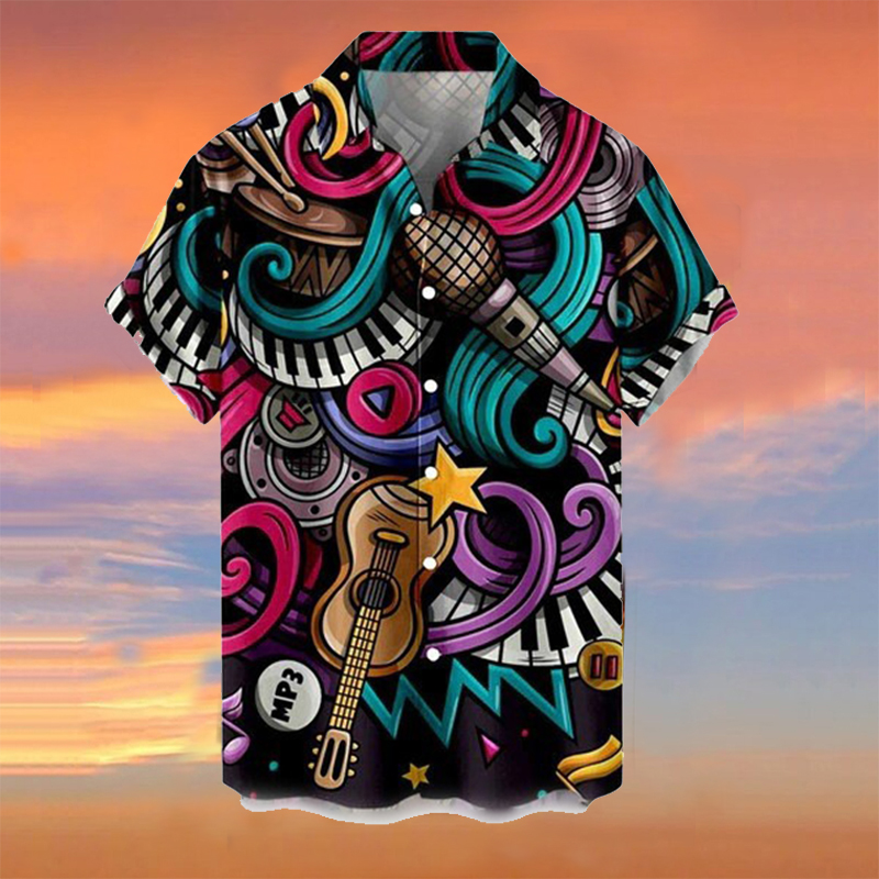 Men's Casual Trend Shirt Musical Note Guitar 3D Printing Short Sleeve Shirt