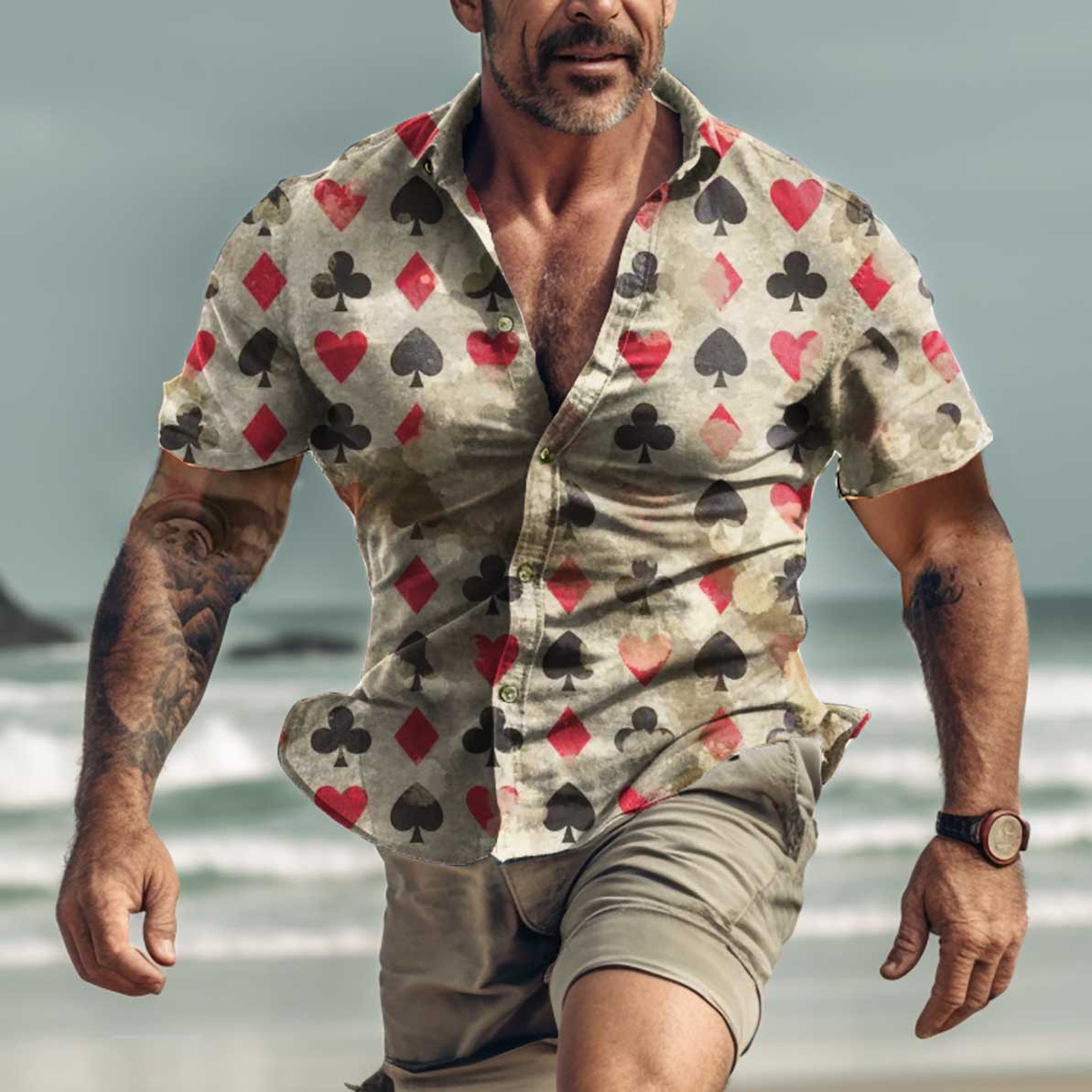 Men's Trendy Hawaiian Poker Print Short Sleeve Shirts