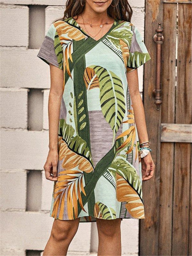 Hawaiian Print Loose Casual Short Sleeve Dress
