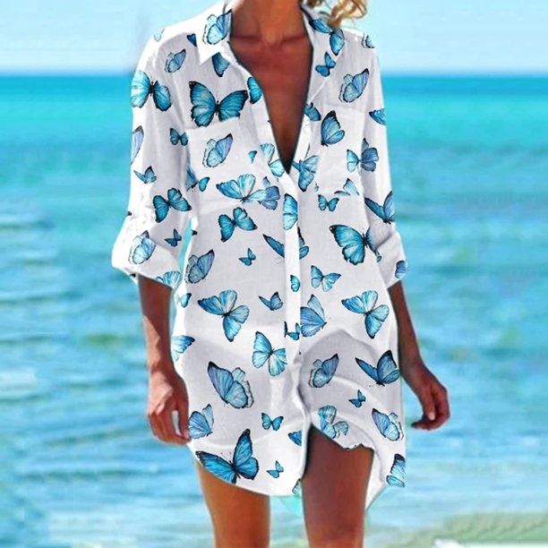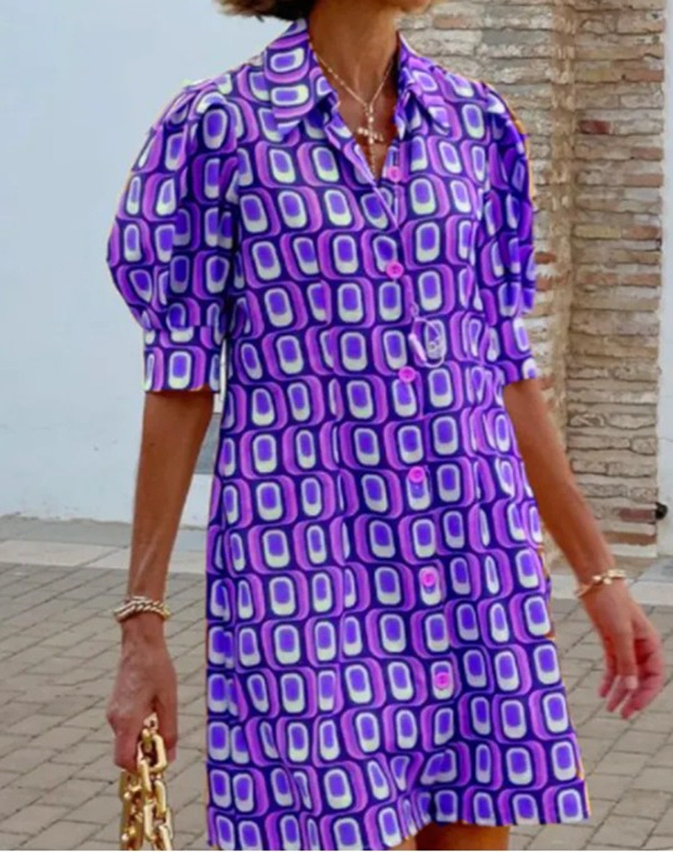 Summer New Fashion Casual Plaid Printed Sleeve Shirt Dress