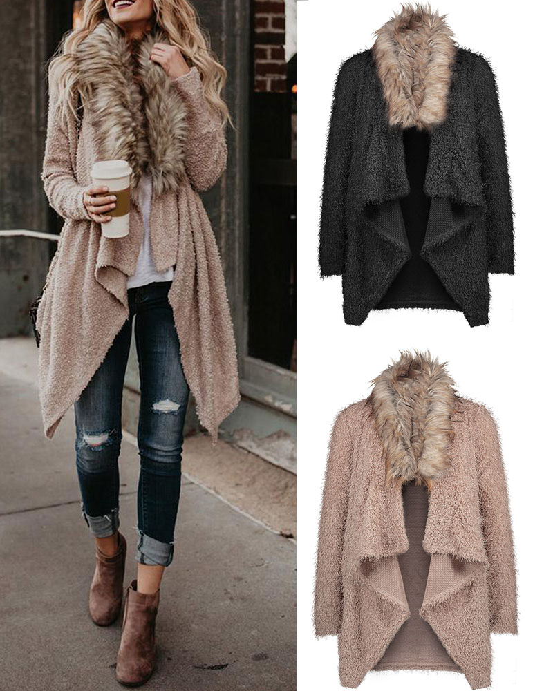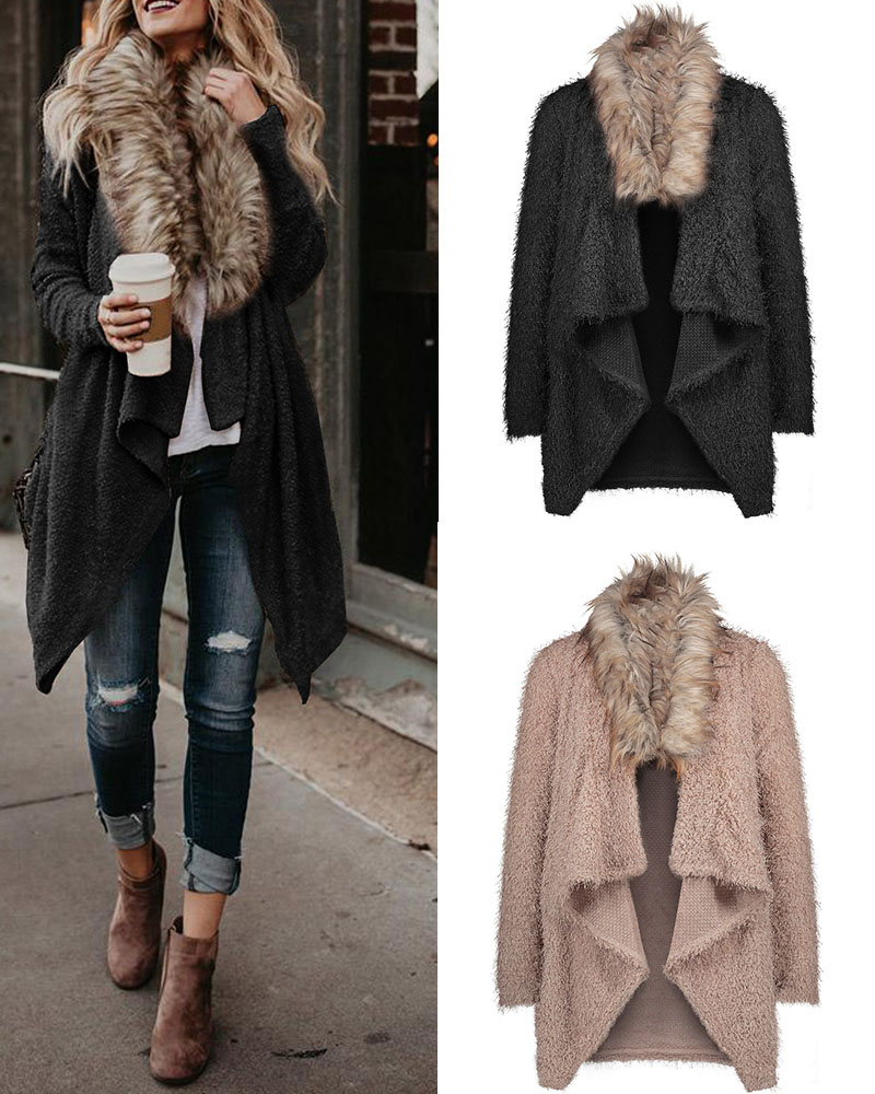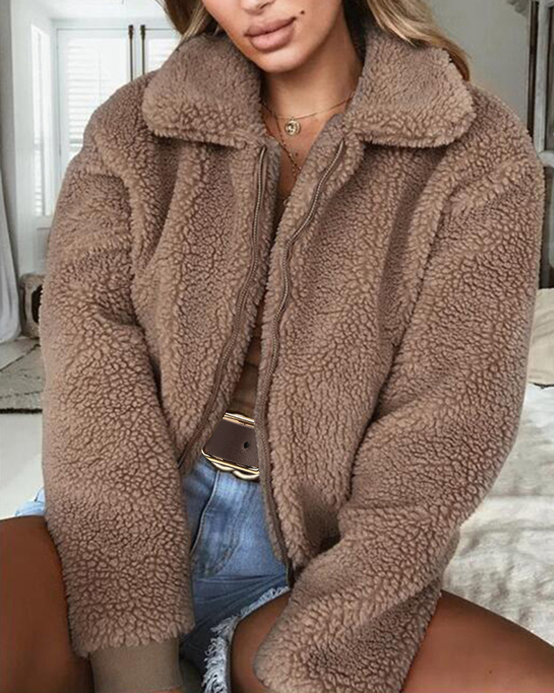 Faux Fur Zip Cardigan Warm Plush Jacket