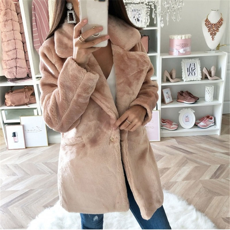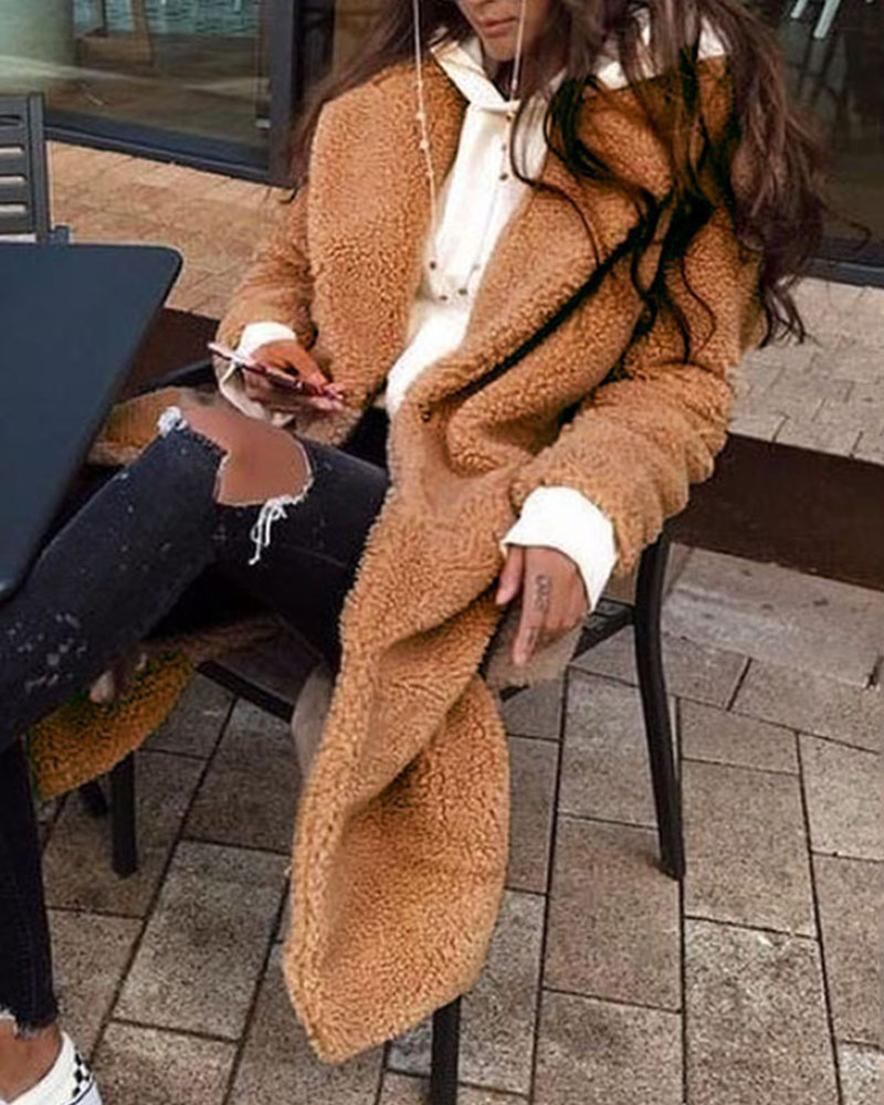 Mid-length Solid Color Plush Coat Faux Fur Coat