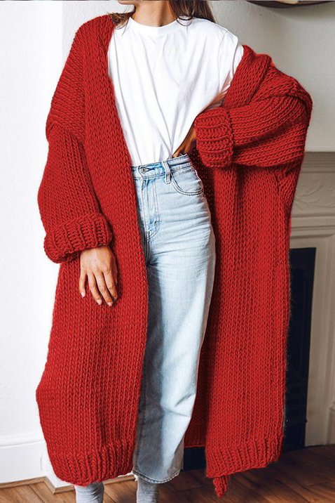 Women's Loose Long Placket Sweater Knitted Cardigan
