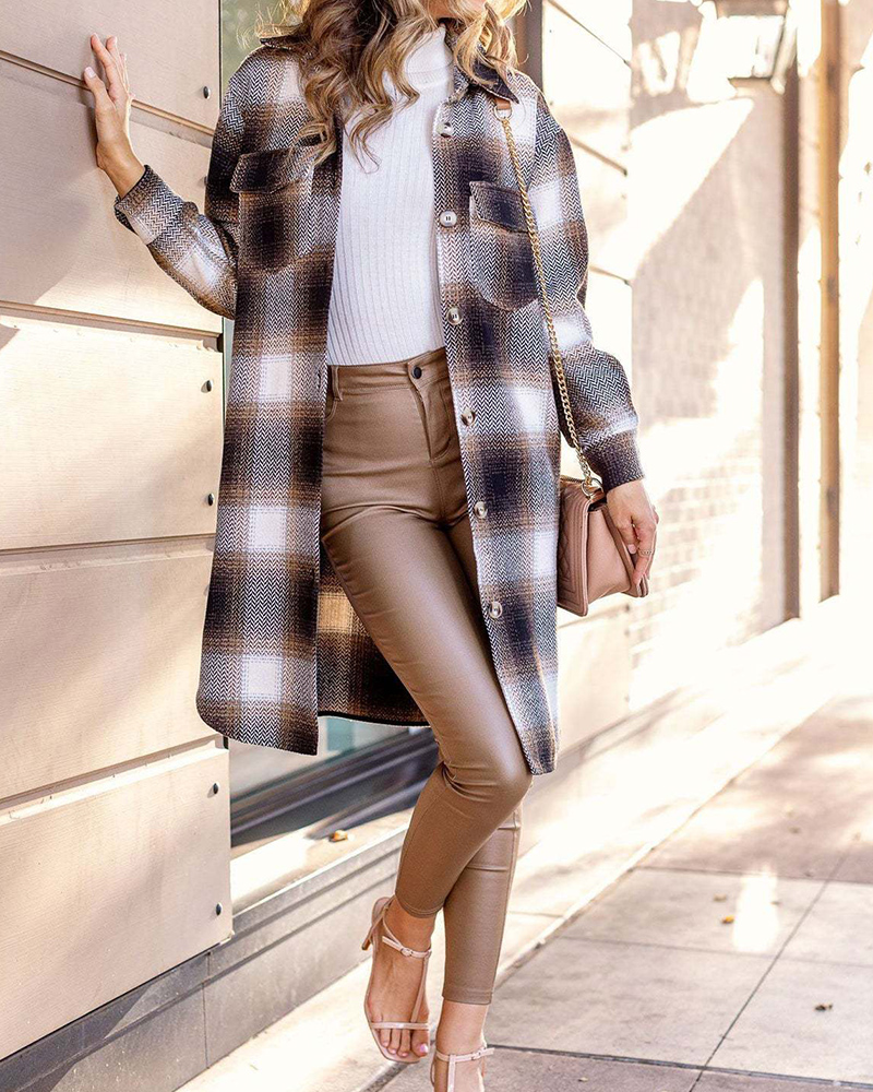 Women's Fashion Single Breasted Plaid Lapel Jacket Coat