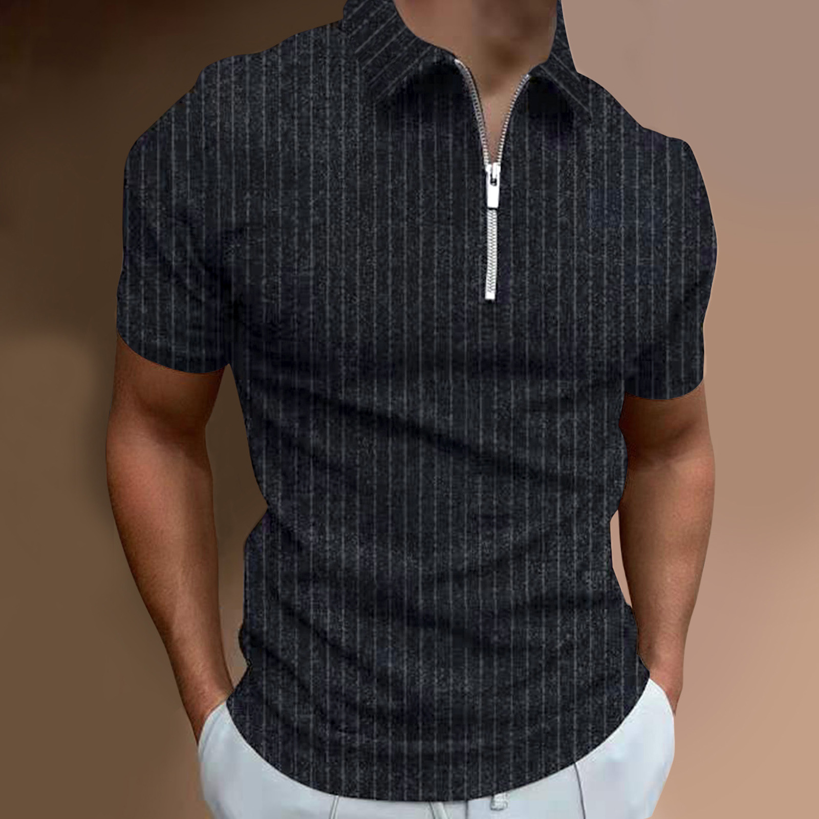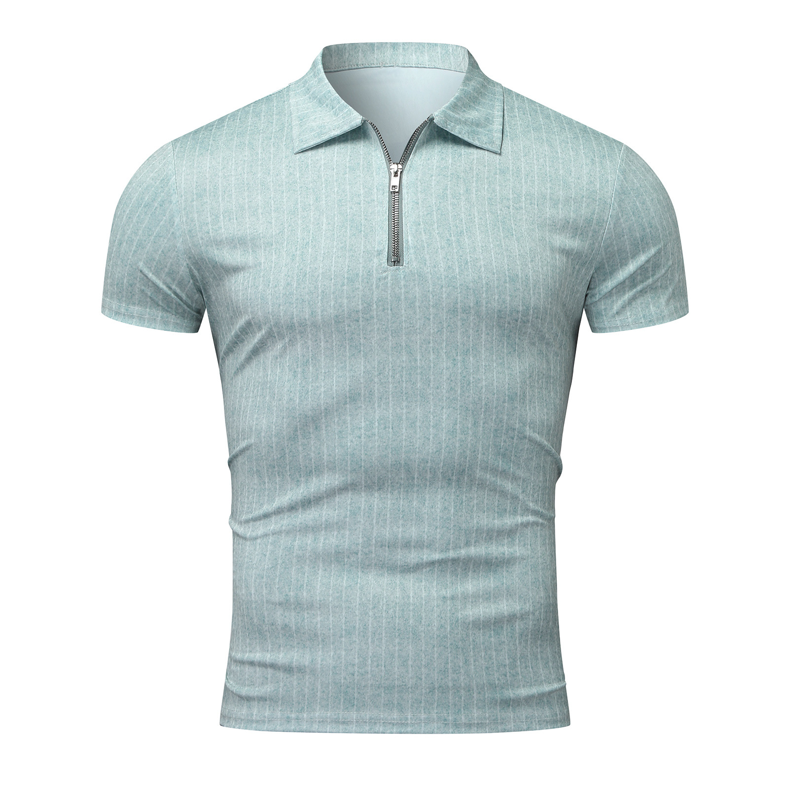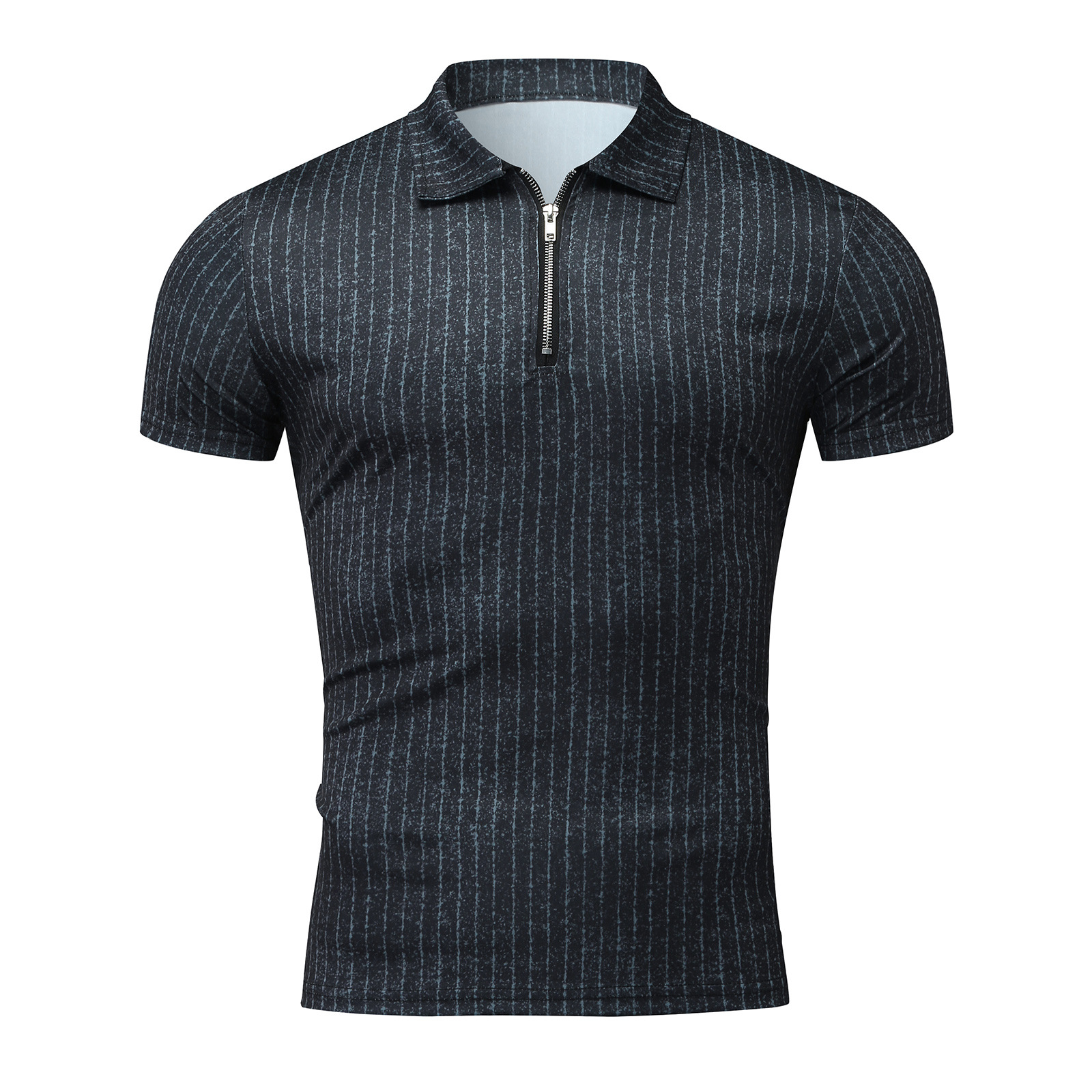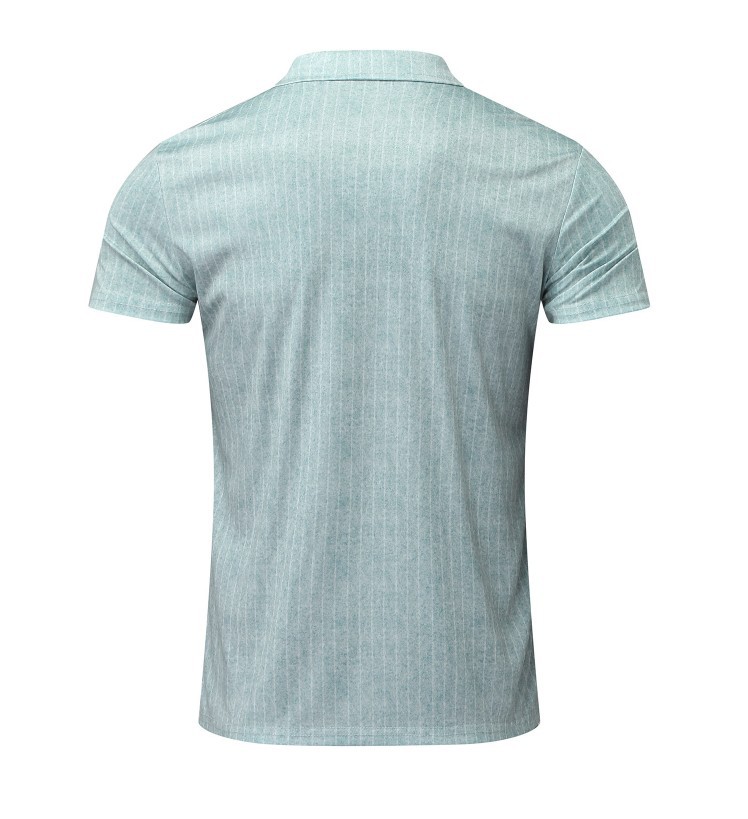 Casual Slim Short Sleeve Striped Zipper Lapel T-Shirt Top Polo Shirt