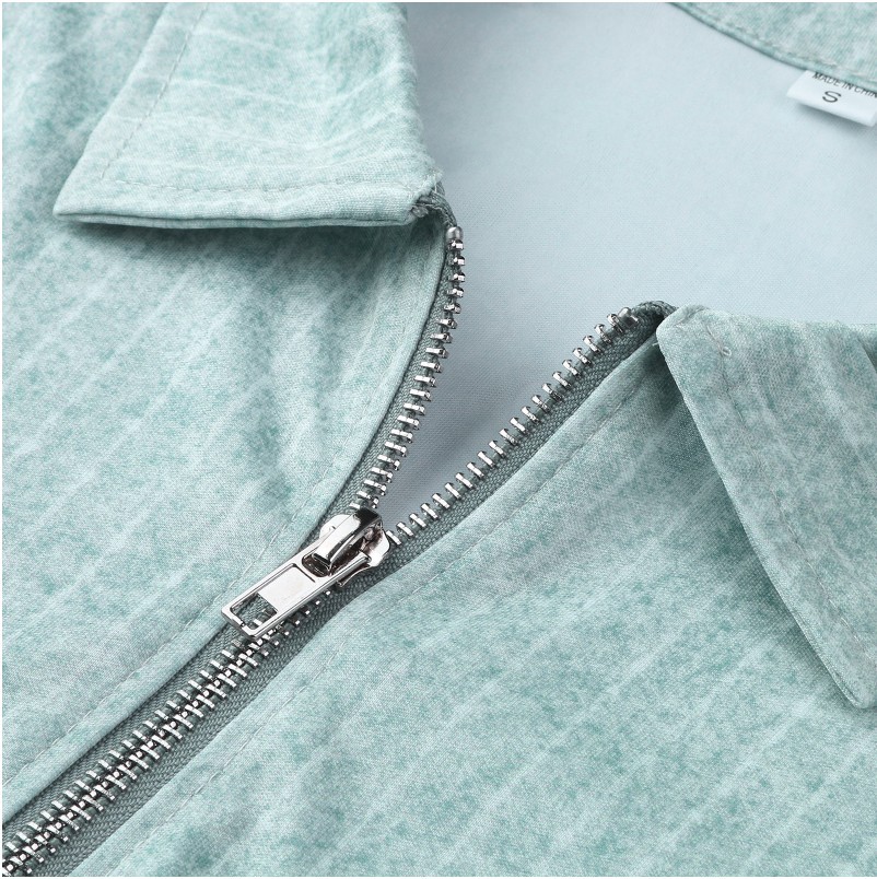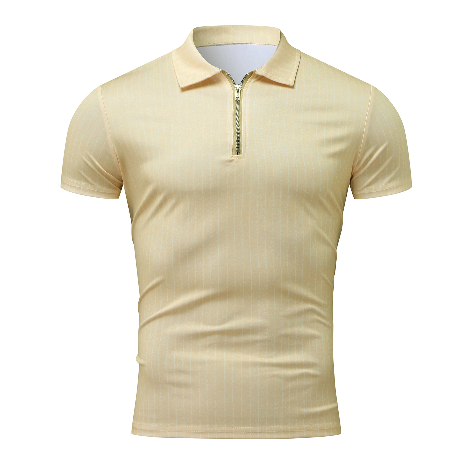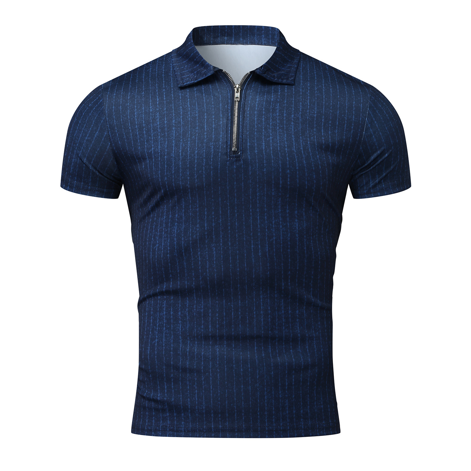 Casual Slim Short Sleeve Striped Zipper Lapel T-Shirt Top Polo Shirt
