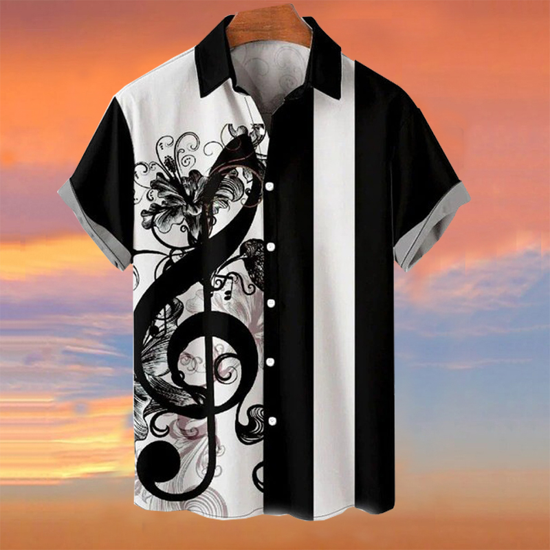Men's Casual Trend Shirt Musical Note 3D Printing Short Sleeve Shirt