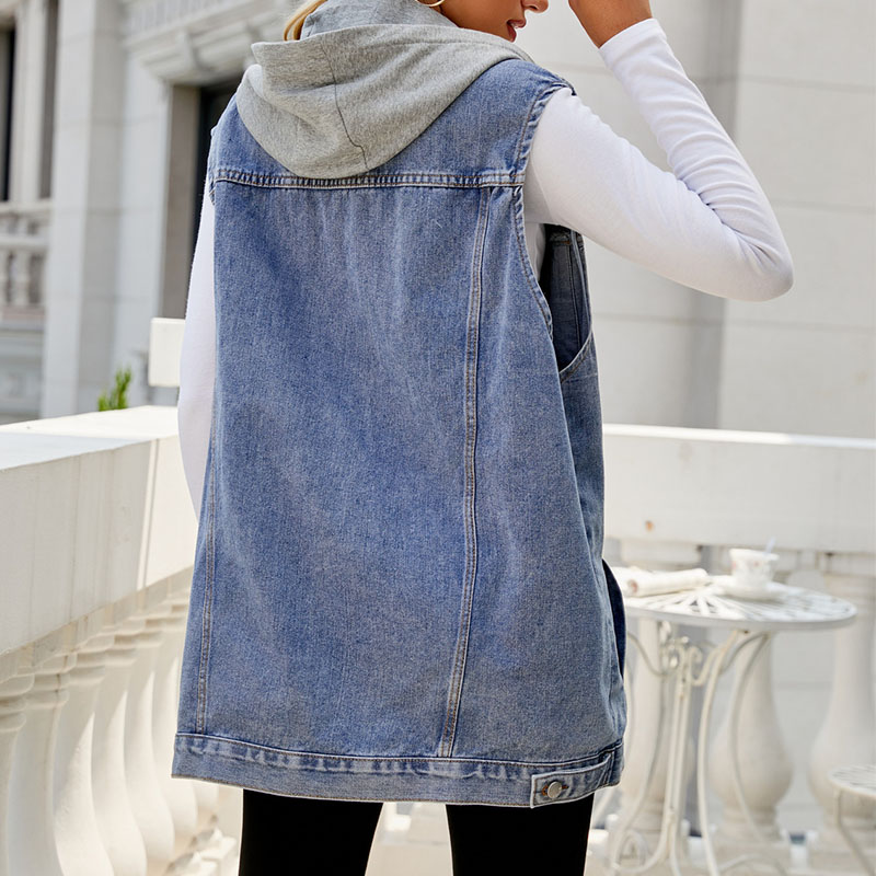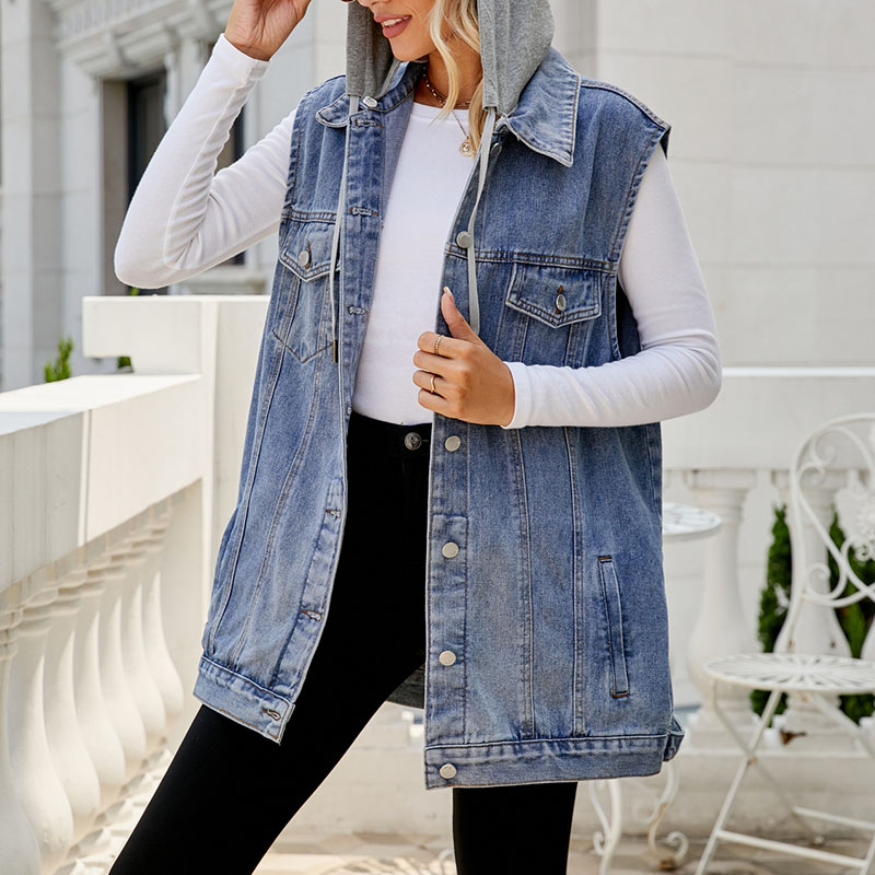 Retro Loose Casual Detachable Hooded Denim Vest Jacket