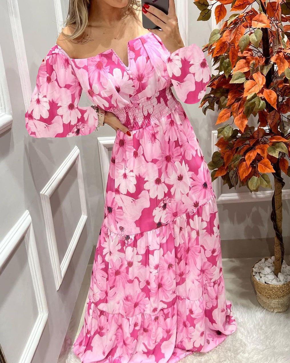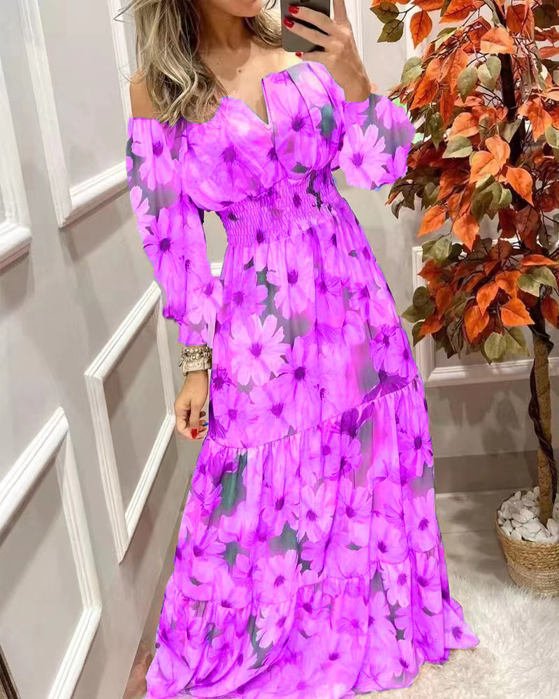 Retro One-shoulder V-neck Waist Slimming Long-sleeved Dress
