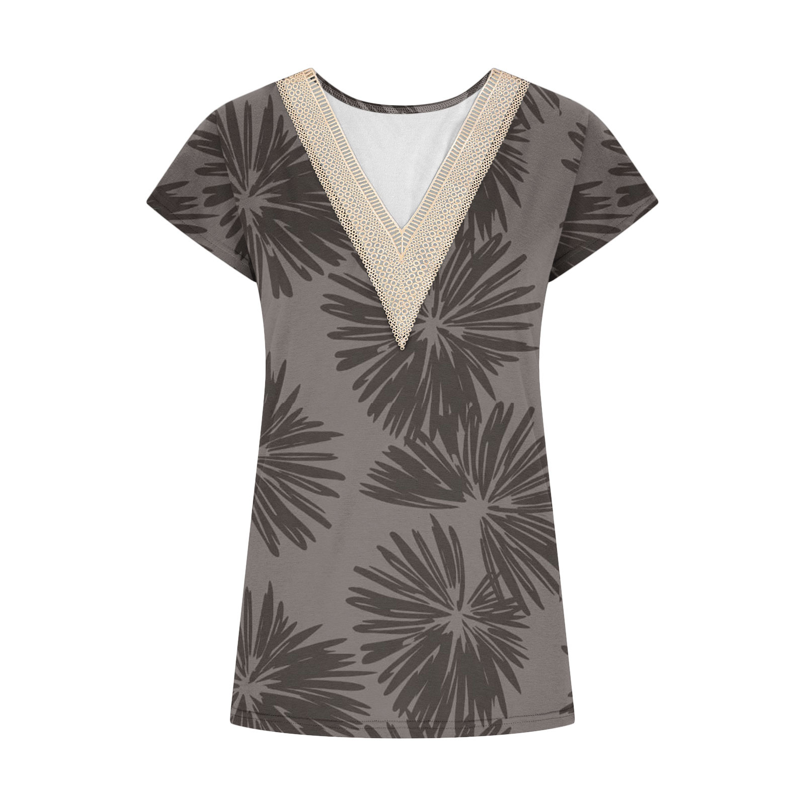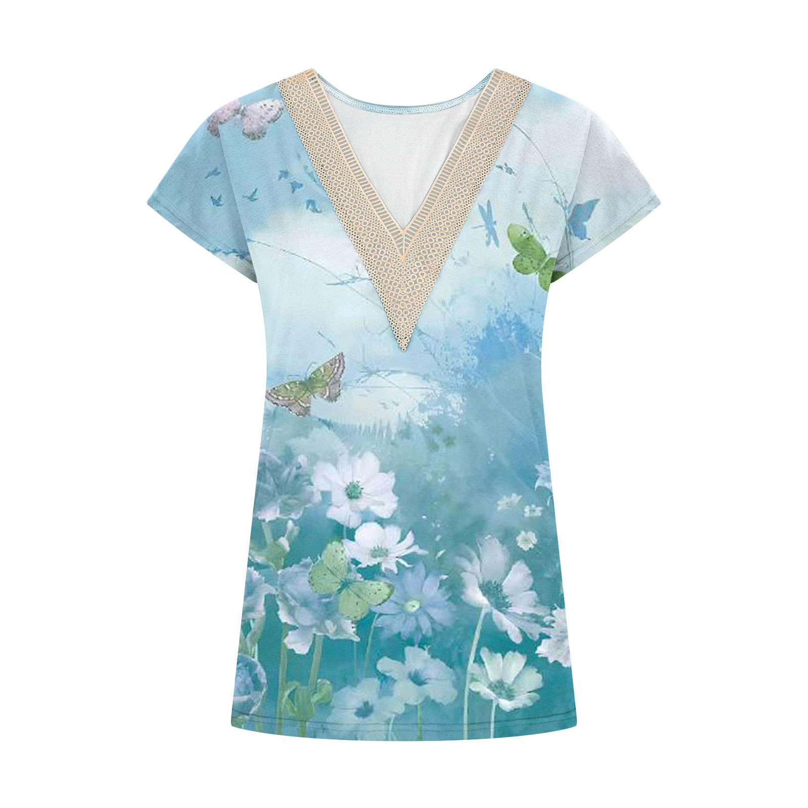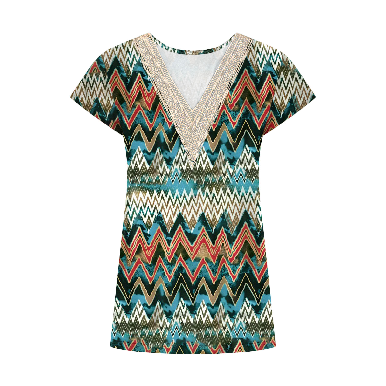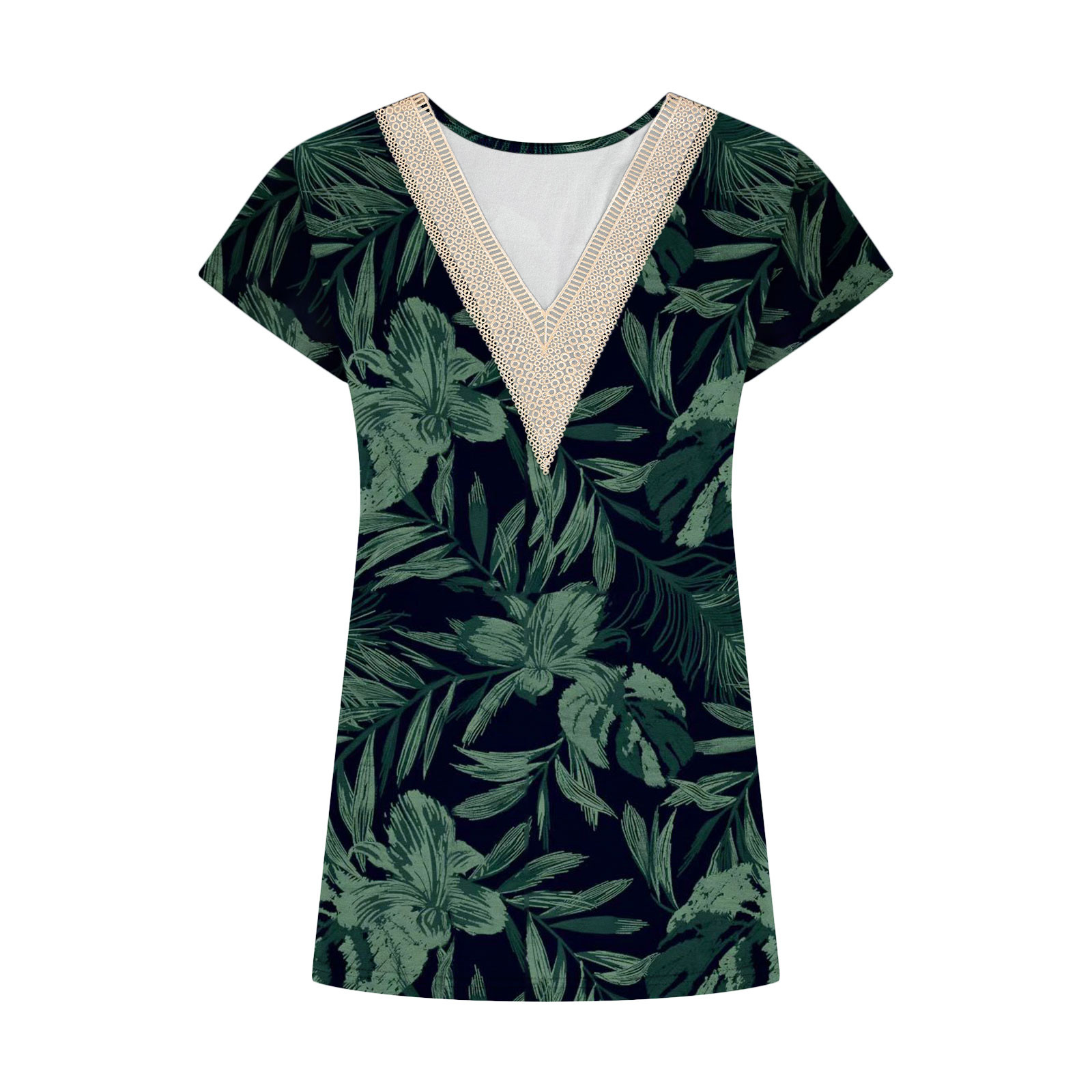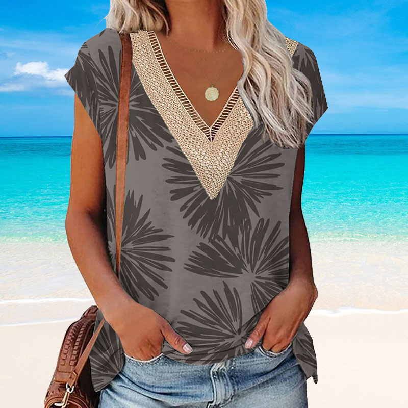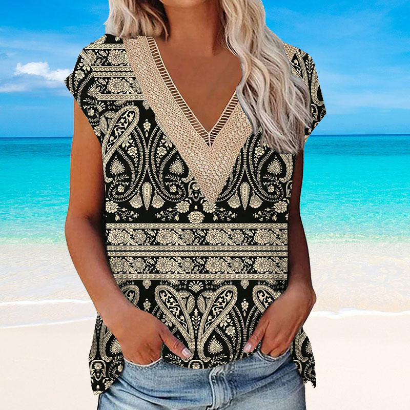 Summer Casual Printed Lace V-neck Top