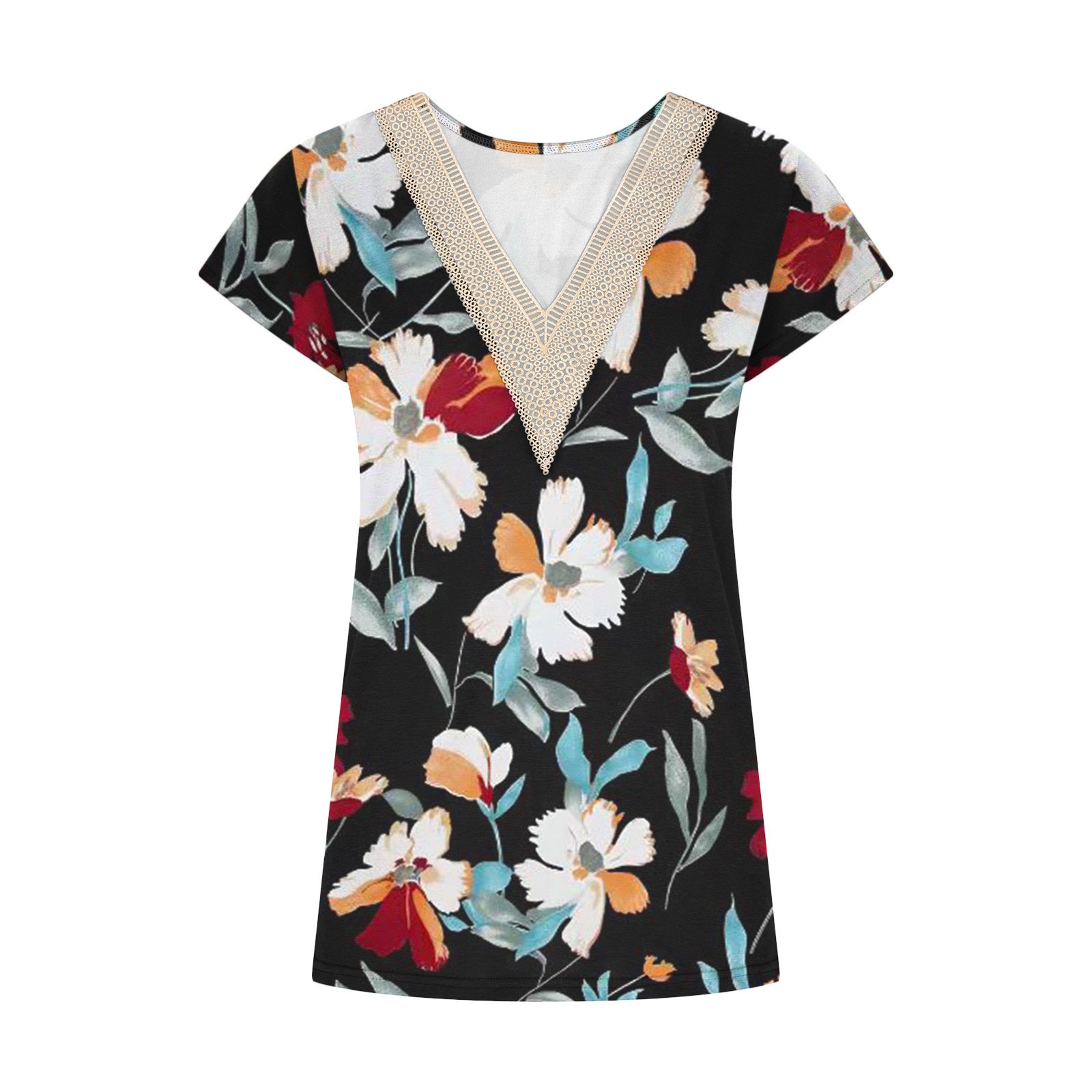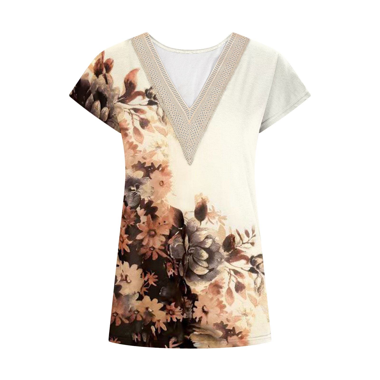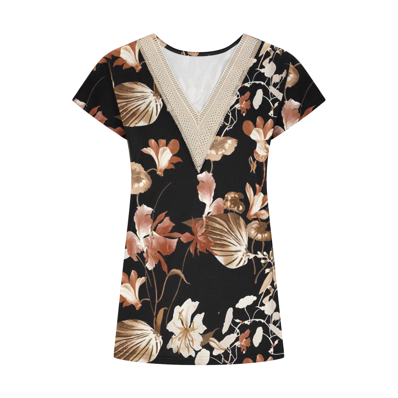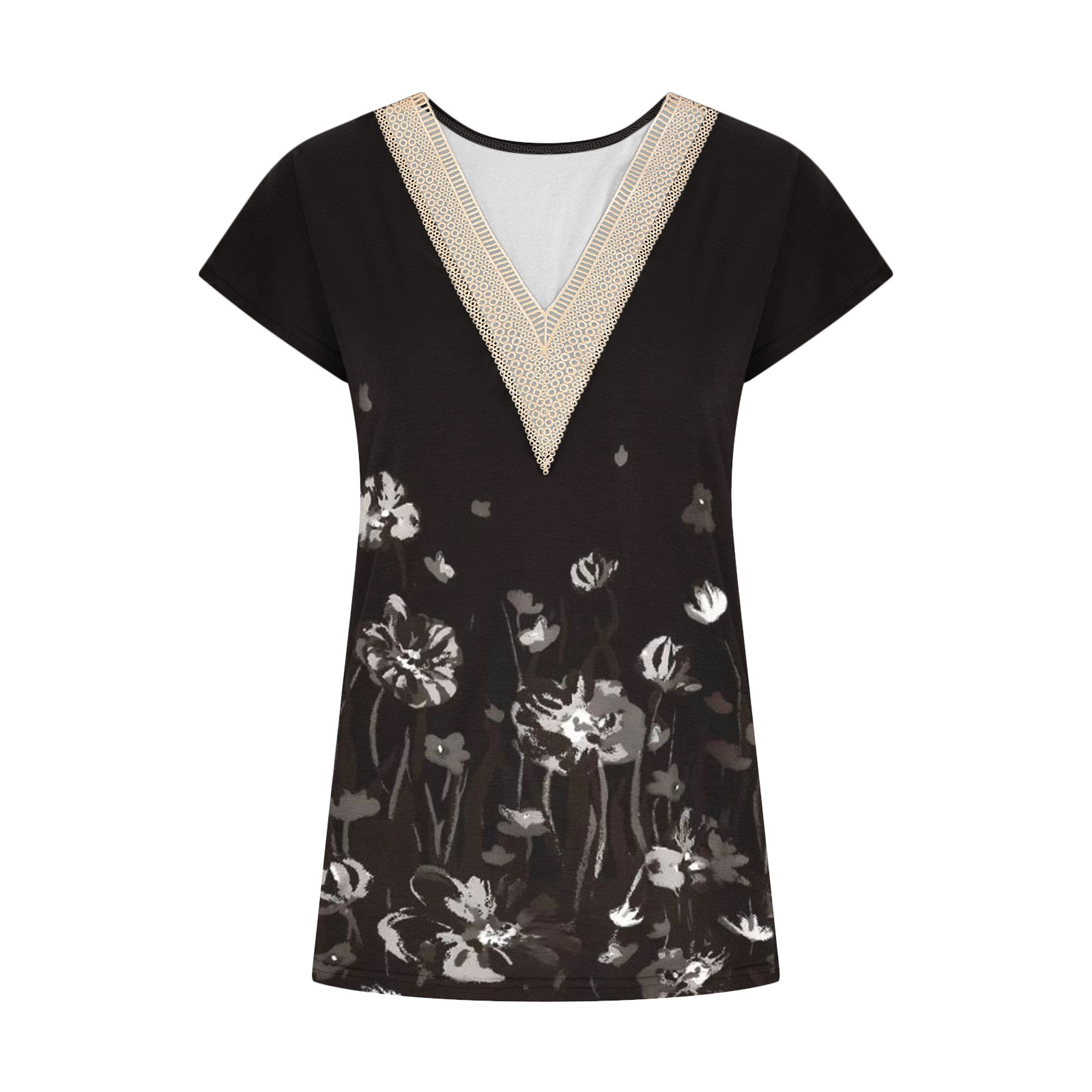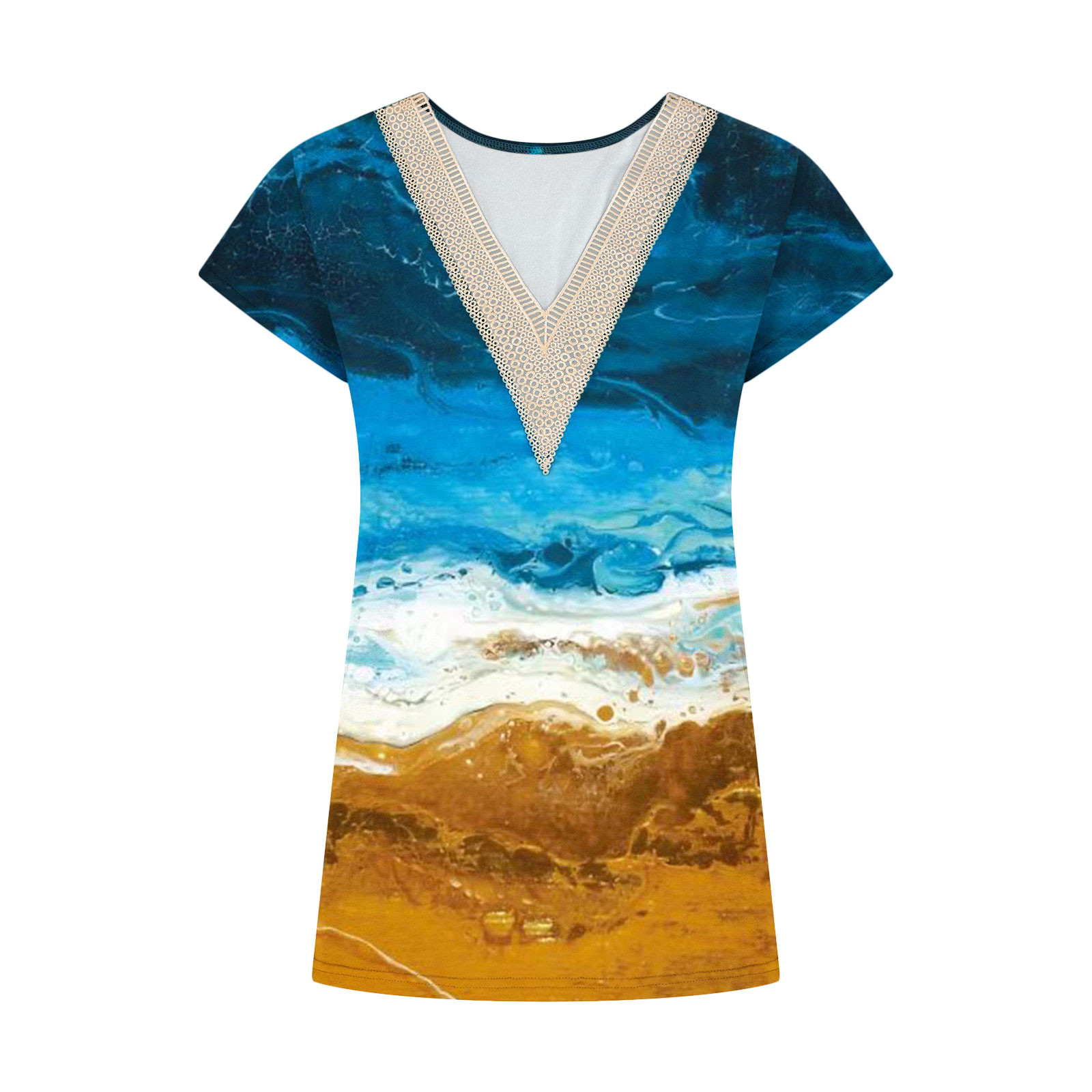 Summer Casual Printed Lace V-neck Top