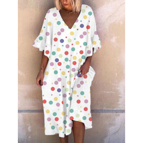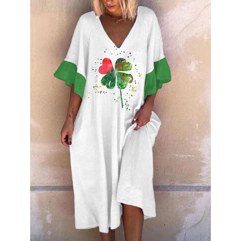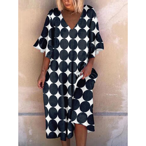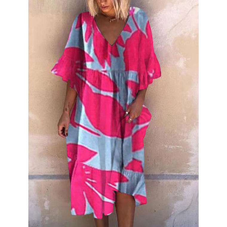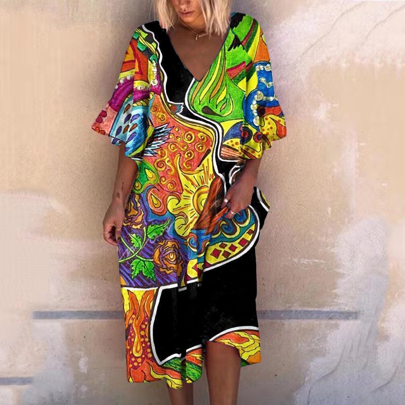 Vintage Print Fashion V Neck Dress