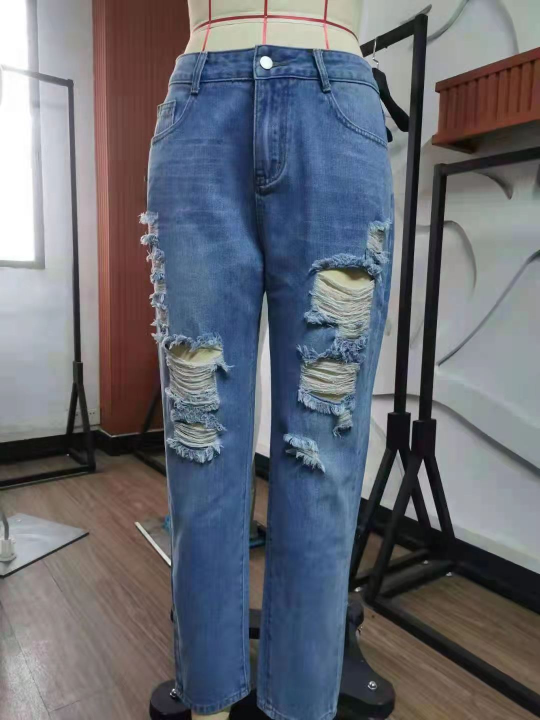 Women's Casual Washed Ripped Straight Street Style Jeans